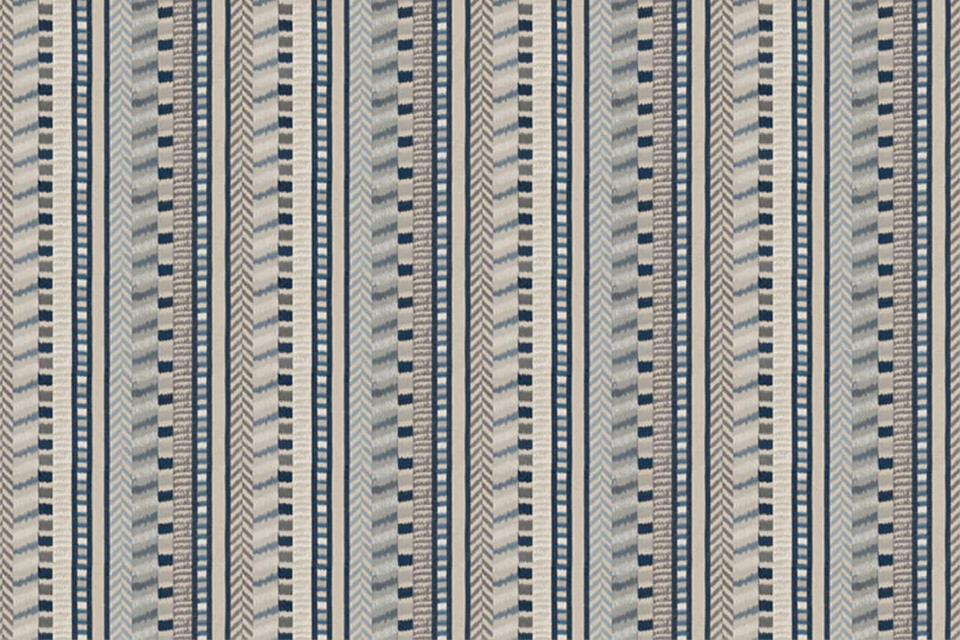 Vertical strokes embroidered within vertical stripes of varying width, Calissa is a dream in contemporary design. Exquisitely detailed and wonderfully structured, its rhythmic intricacy lends it an expansive air.