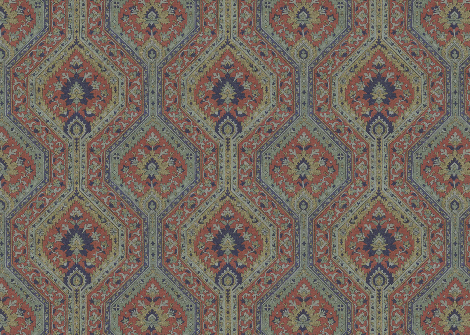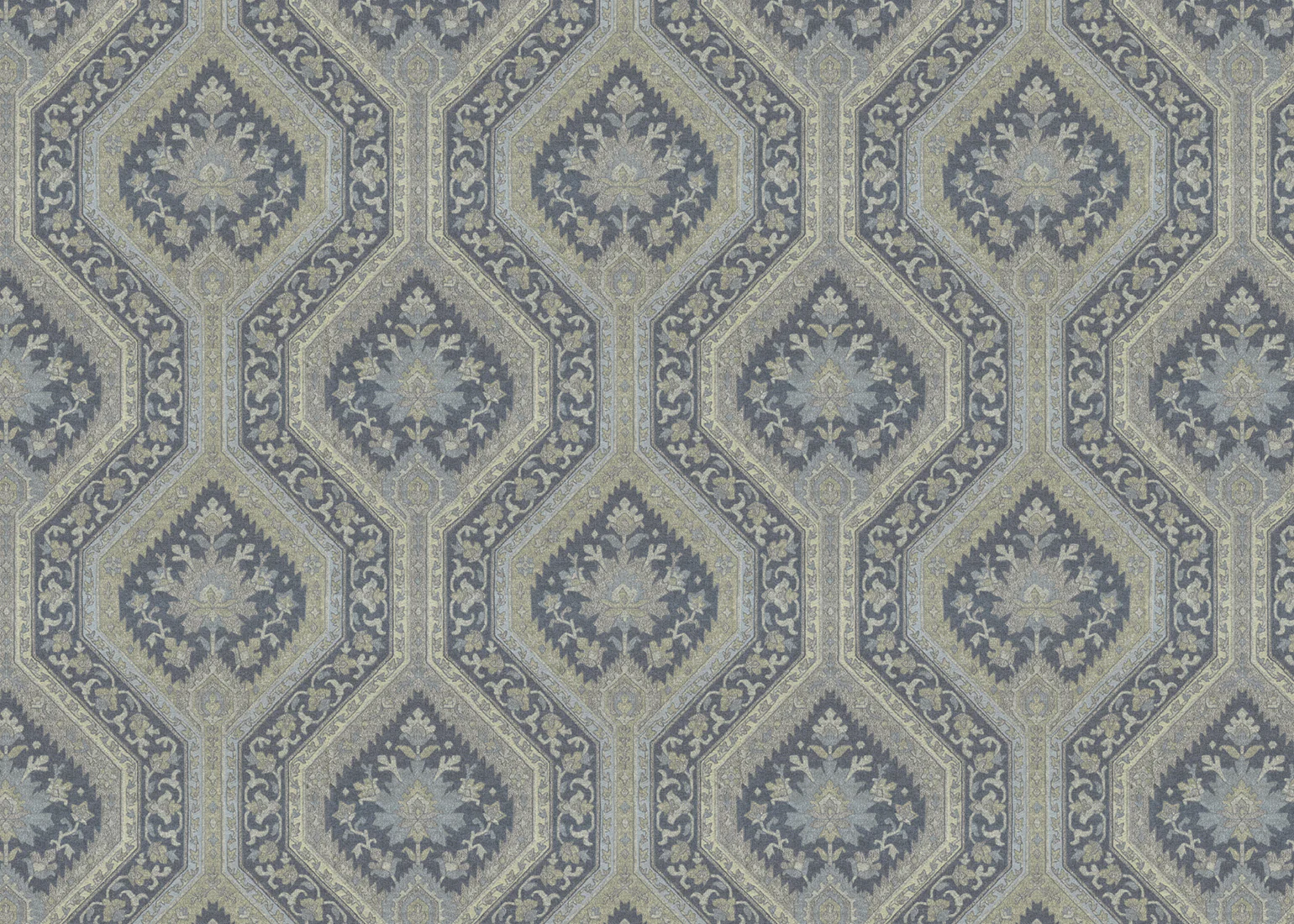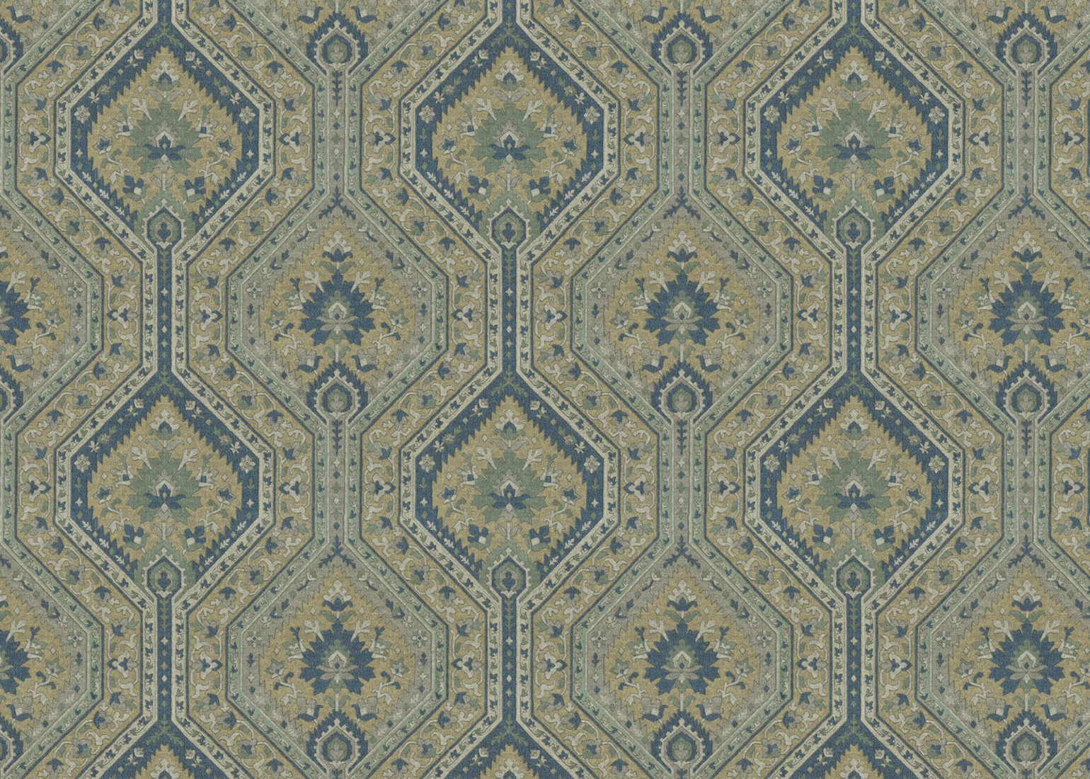 Symmetry, precision, and stylized geometric and floral motifs find a home in Nursultan. Alternating thick and thin bands bedecked with patterns make for a grand look in a classic design.